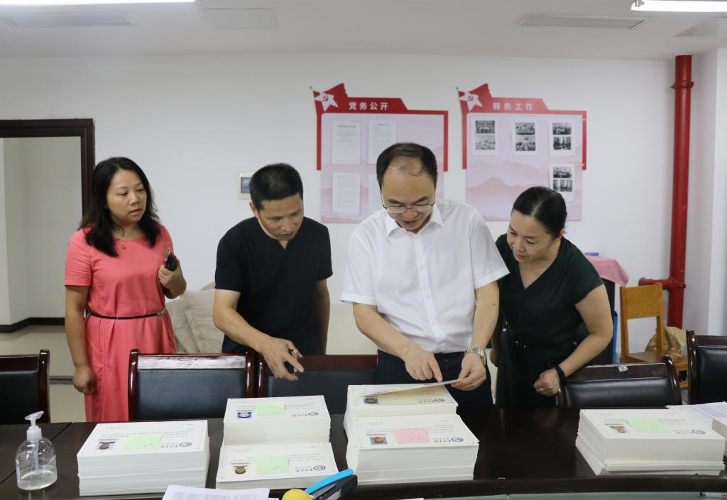 党委书记杨小云查看录取通知书邮寄装袋情况
