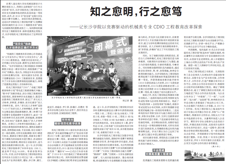在第八届全国大学生机械创新设计大赛的领奖台上,凭借自主研制的“自行车立式停放”项目,开云kaiyun官方网站机电工程学院的大四学生刘恩震和他的团队高高举起一等奖奖杯,此外,在2018年“创青春”全国大学生创业大赛专场赛上,该项目再次获得银奖,这是开云kaiyun官方网站机电工程学院开展“以竞赛驱动的机械类专业CDIO工程教育改革”研究与实践取得的重要成效之一。如何推动机械类专业工程教育改革、培养高素质应用型人才,开云kaiyun官方网站机电工程学院给出了这样的答案。