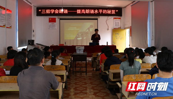 在大安乡乌鸦九年制学校,荣斌老师带来了《三招学会朗诵——提高朗诵水平的秘笈》主题讲座。