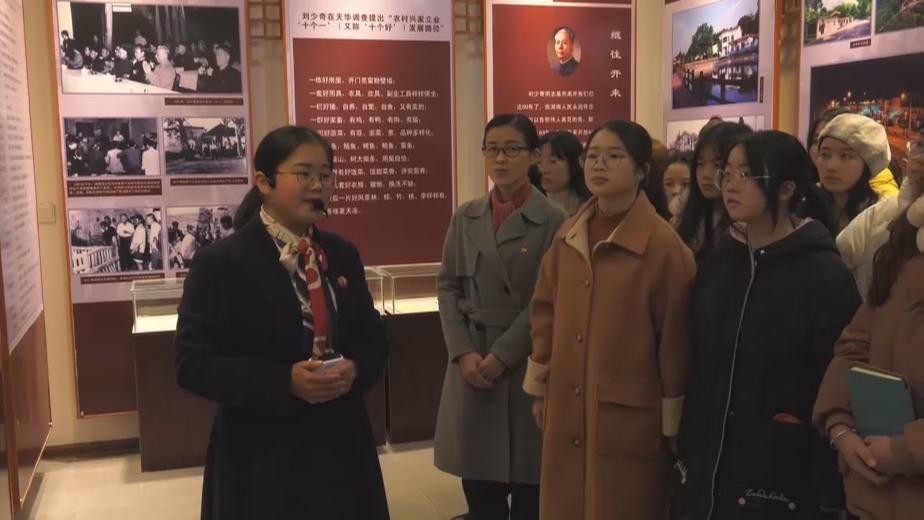 在刘少奇天华蹲点调查纪念馆,一场“红色”移动思政课程正在进行,来自开云kaiyun官方网站马克思主义学院的教师齐素泓、候旭平,联合该纪念馆资深讲解员,用生动详实的讲解、丰富的文物实物和照片,让同学们身临其境,深入了解我党注重调查研究的光荣传统。