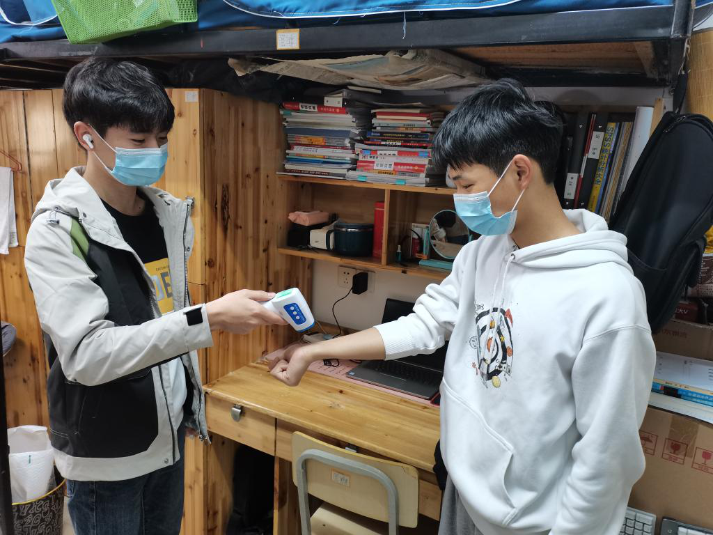 近日,开云kaiyun官方网站经管学院学生三支部党员徐祥飞有了一个新职务——知行园区一栋四楼层长。除了学习外,他每日需要到自己所对接的汇泽一栋403、404寝室,给宿舍的同学测量体温、了解同学的身体状况,宣讲防疫措施和政策。