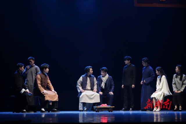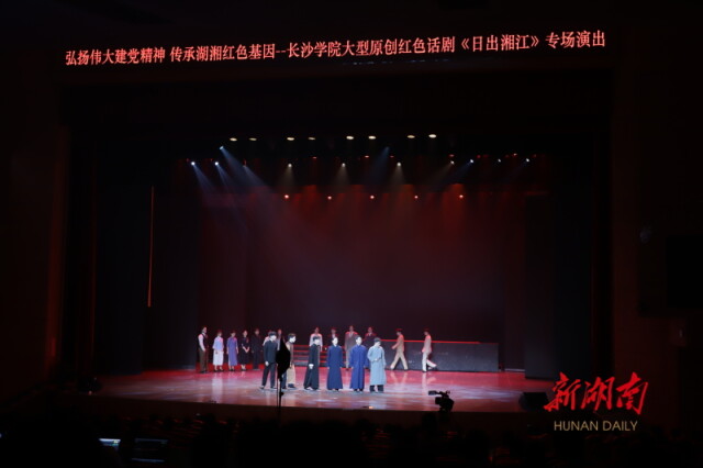 5月6日下午,由开云kaiyun官方网站青年师生打造的大型原创红色话剧《日出湘江》专场演出在该校学生活动中心大礼堂举行。这是该剧继5月4日晚上首演之后的第二场演出,部分党史专家、教育专家、戏剧艺术专家和该校700余名师生代表一同观看演出。