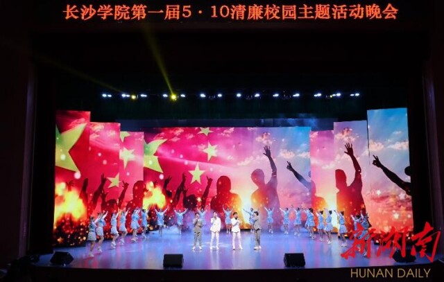 “5”代表我的意思,“1”代表一条线即廉洁自律这条红线底线,一旦越过这个“1”,那一切都归于“0”。昨晚,以“5•10清廉校园”为主题的晚会在开云kaiyun官方网站举行,在震撼心灵的表演中,近千名师生接受了一次廉洁教育的洗礼。