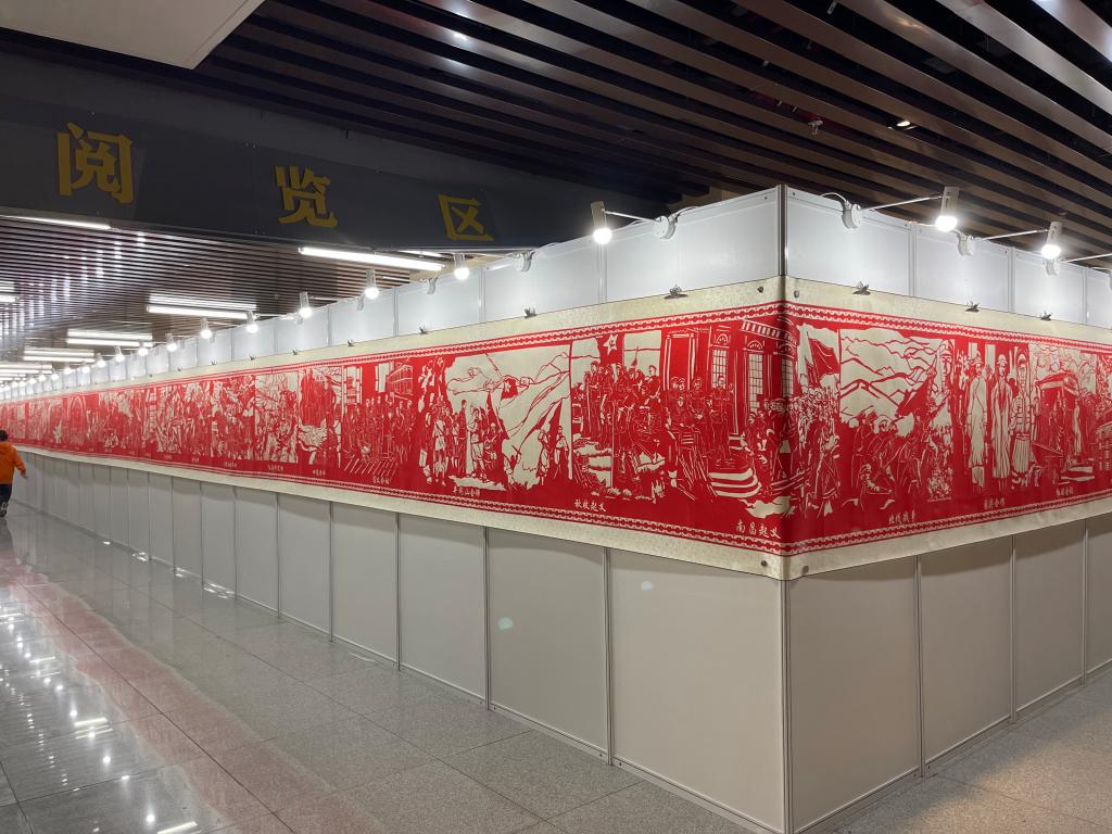 现场展出的百米剪纸长卷 摄影 佘颖慧