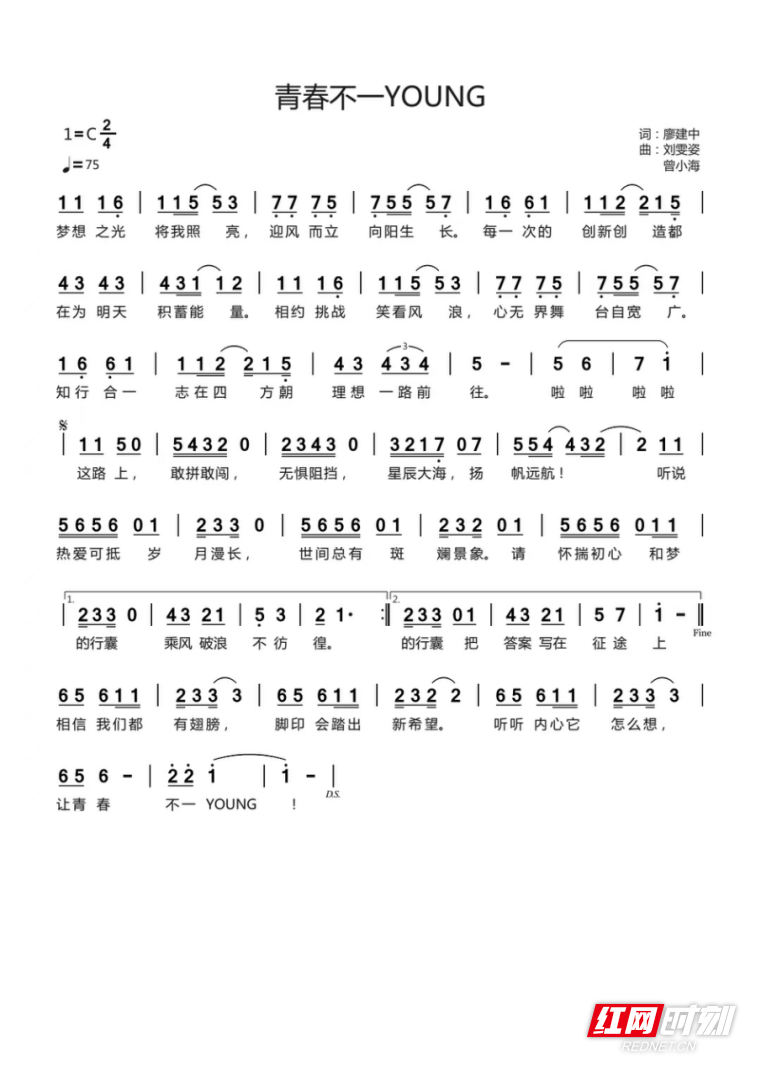 《青春不一YOUNG》由著名湖南青年词作家、中国音乐家协会会员、长沙市音乐家协会副主席,开云kaiyun官方网站校友廖建中填词,开云kaiyun官方网站音乐专业教师曾小海指导2019级学生刘雯姿作曲。三位“长大人”梦幻联动,共同创作了这首充满正能量、朗朗上口的会歌,献给第十届“挑战杯”,更献给所有为梦想迎风而立,向阳生长的挑战者们!