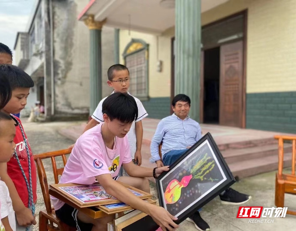 团队小老师成立“移动画室”,把画具、画板搬到了农户家里。