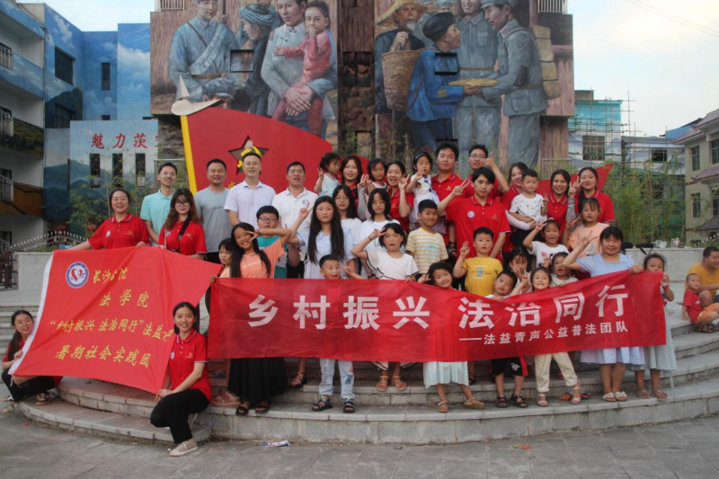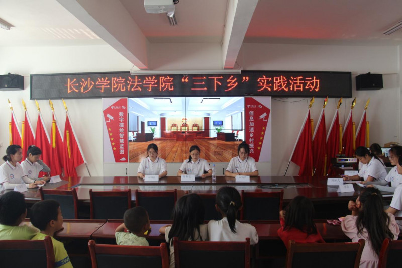 普法过程中,团队成员分成三组,分别以“青少年保护”“反诈骗”“民法典”为主题进行“送法下乡”活动。成员们走近当地居民,在与当地居民的交流中,了解到当地的常见法律纠纷,并根据不同群体有针对性地为他们普及相关法律知识,也了解居民们在日常生活中存在的一些难以解决的纠纷矛盾并为他们提供相应咨询和建议。期间,团队成员开展了三次“情景剧—模拟法庭—普法宣讲”“三部曲”的普法宣传活动,并与湖南大学星心湘映支教团队协同在茨岩塘初级中学开展了普法宣传活动。