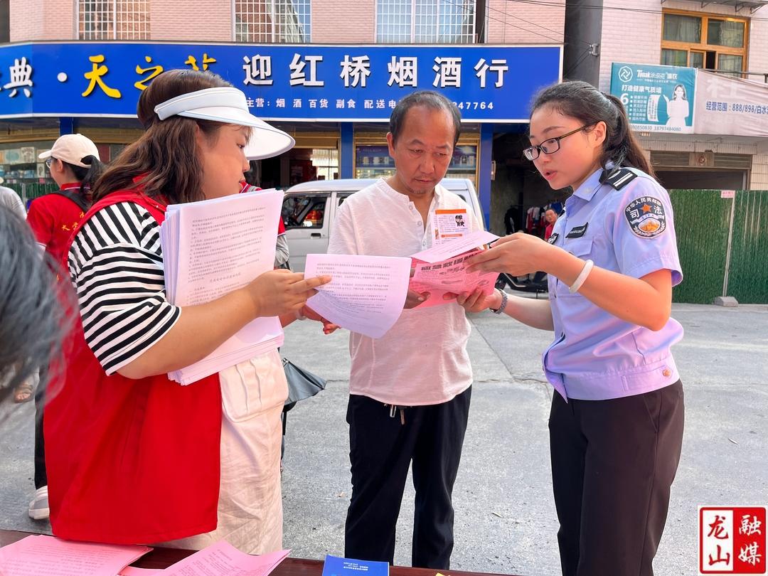 工作人员和“法益青声”普法团队成员在普法“摊位”前通过悬挂横幅、发放宣传资料、现场解答法律咨询等方式,向来往群众宣传《民法典》《未成年人保护法》《老年人权益保障法》《消费者权益保护法》《禁毒法》《道路交通安全法》以及反电诈、反邪教、打击整治养老诈骗、防范打击非法集资、民族团结等与群众生产生活息息相关的法律法规和政策知识。