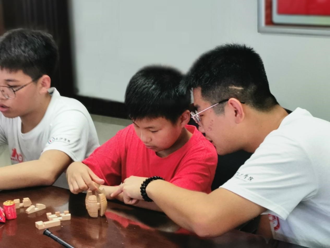 期间,实践团成员围绕革命遗址保护及开发情况,开展走访调研,了解其对于革命遗址现状的认知及未来的展望。在团队成员共同努力下,共收集有效调查问卷197份。在整理调查问卷时,实践团成员发现当地青年人对家乡陶铸故居等革命遗址的了解程度普遍低于中老年人,反映出青年人红色文化教育存在薄弱环节。团队基于现实问题并结合专业知识,在陶铸图书馆和祁阳市人民法院开展了“筑梦童心,红色传承”——“行走”的红色历史建筑知识课堂,向当地小朋友们分别讲述了陶铸故居与新民学会旧址背后的红色故事,并介绍了卯榫、斗拱等中国古建知识。在课堂上,实践团成员指导小朋友们解密孔明锁,感受中国古建技艺,课堂气氛十分活跃。“这样的课堂还想继续再上,又深刻、有趣味,哥哥姐姐们你们明年再来好吗?”小朋友曹曹课后拉着实践团成员动情地说道。