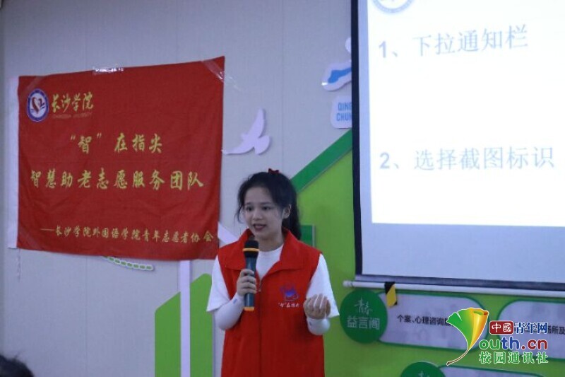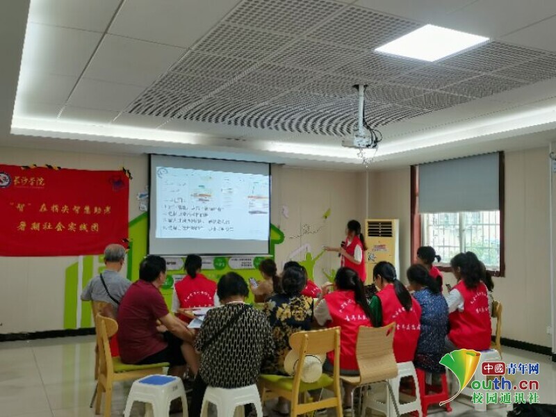 图为小老师在第一堂课上为松雅社区老人讲解智能手机的基本操作。中国共青网通讯员 钟佳雨 供图