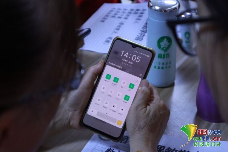 图为志愿者和老人在认真听小老师讲课。中国青年网通讯员 钟佳雨 供图