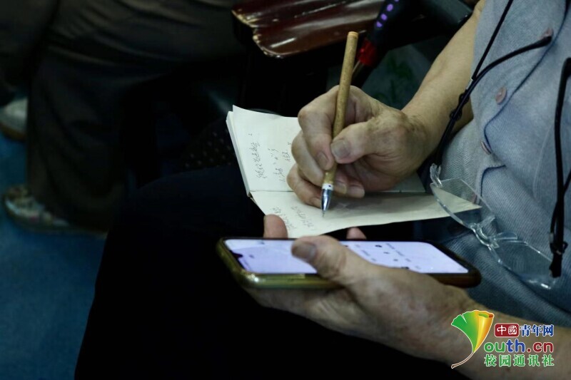 图为老人上课期间,认真做笔记。中国青年网通讯员 杨菁 供图