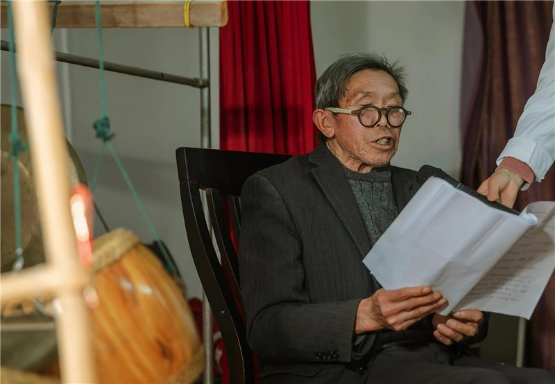 湖南省首批省级非物质文化遗产项目传承人、第十七代皮影戏传承人王冬林正在唱皮影戏。 颜益平 摄