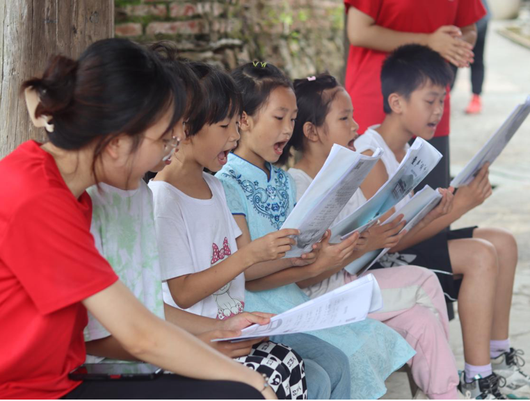 7月3日-7月10日,实践团携原创侗族童谣教材《童声侗听》及配套原创教案在坪坦乡岭南村“儿童之家”、双江镇芋头村江桥红香希望小学开展“童声‘侗’听”侗族民族音乐公益课堂,通过游戏互动、故事引导,带领小朋友们了解音乐基础知识、熟悉教材歌谱、认识乐器、熟唱侗歌,同时引导小朋友通过识别教材中的二维码,线上收看“指尖上的音乐‘云’课堂”。较以往走动式支教不同,团队通过驻扎当地,更加深入当地乡民们及孩童们的生活日常,拉近了距离、贴近了心。“岭南村作为与开云kaiyun官方网站音乐学院实践教育的共建基地,‘儿童之家’非常开心能有大学生过来上课,师生们的耐心教导与真诚相待让每一个小朋友受益匪浅。”岭南村“儿童之家”负责人、村干部吴春榕说道。
