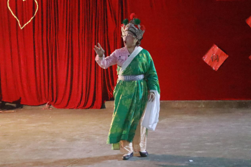 联欢会上,实践团、岭南村文艺队、牵手公益组织、侗戏传承人、村民共聚一堂,一起度过这难忘的夏夜。实践团队员们或放声歌唱《把一切献给党》,或与小朋友一起边弹边唱,或将舞蹈技巧发挥得淋漓尽致,或齐唱建团百年主题曲《有我》……村民们将侗纱、侗琵琶、侗乡农耕文化等侗族文化节目搬上舞台,牵手公益组织在现场弹奏侗琵琶,并以《欢迎你到侗寨来》一曲感谢团队的到来。其间,侗戏非遗传承人——龙登娥老师也第一时间赶赴现场,以一首侗戏深入侗乡民众内心。现场,传统文化与现代文化之间交相辉映,让村民们感受到一场侗乡特别的“村晚”。