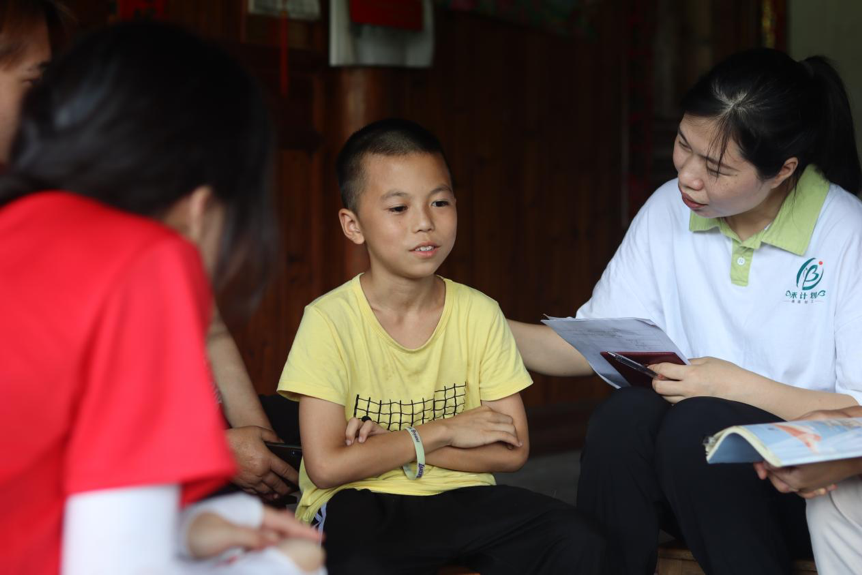 实践期间,实践团携手怀化市通道侗族自治县岭南村村委会及当地牵手公益组织共同走访当地困境儿童,关爱助力孩子的健康成长。大家兵分三路,顶着烈日,逐户走访。走访中,每一个孩子的情况各不相同,但相同的是都有着让人疼惜的感动。走进每一个“童声‘侗’听”课堂孩子,他们稚嫩且懂事,脆弱且坚强。一幕幕是真实乡村发展下孩童的写照,同时也为实践团队员带去深刻的沉思。