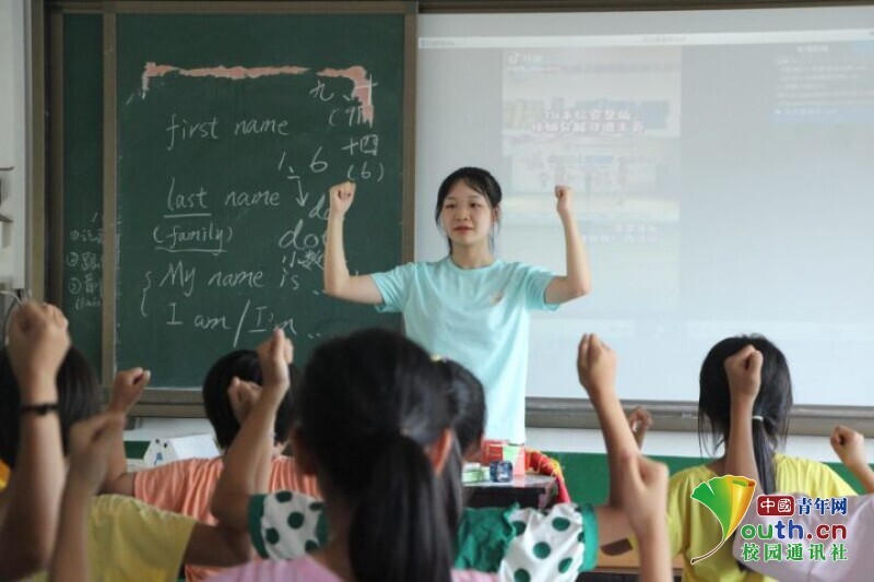 图为支教老师正在上英语课。中国青年网 通讯员 蒲原佳兰 摄