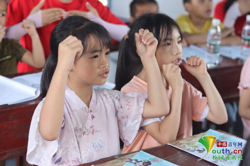支教老师正在教小朋友们音符手势舞。中国青年网 邹丽 供图