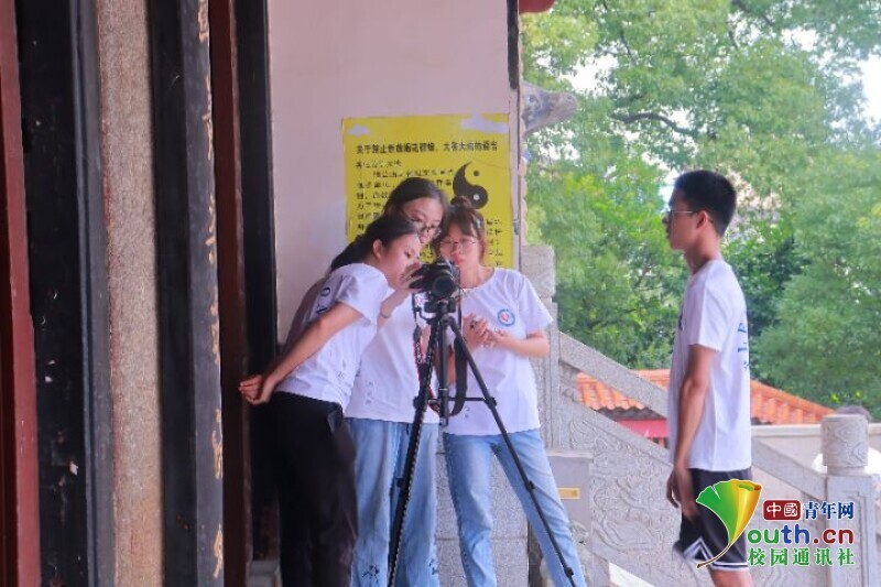 图为团队成员在对陶公庙内部环境进行拍摄工作。中国青年网 李家琪 摄