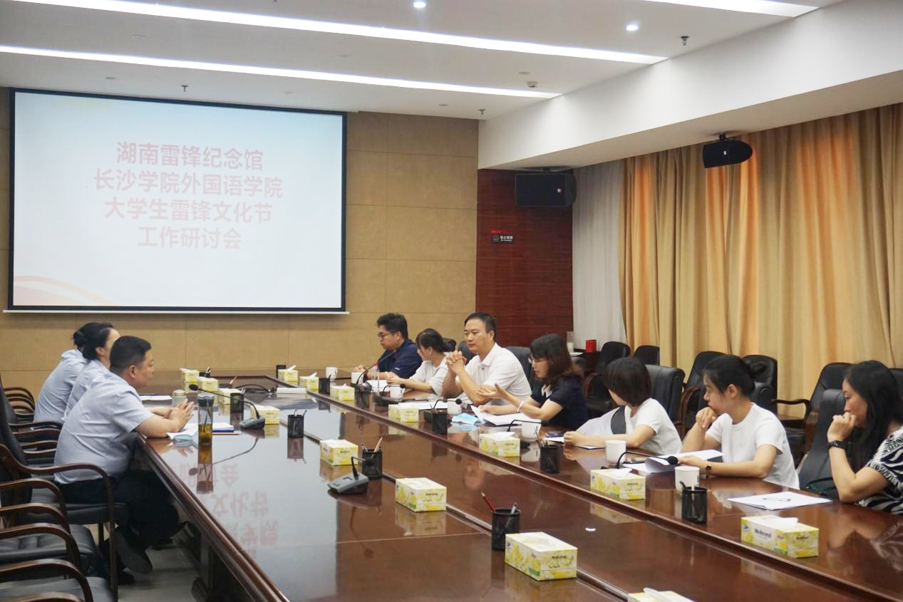 湖南雷锋纪念馆党组书记邹文和副馆长廖志军向外国友人赠送纪念品。会后,双方就“大学生雷锋文化节”相关事宜进行了研讨。来源:中国雷锋网 记者 刘旺 摄