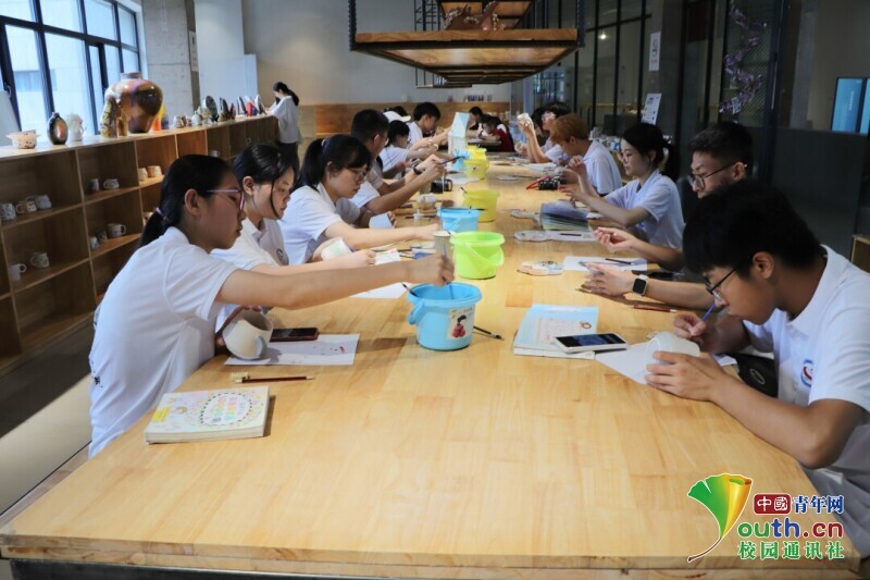 图为团队成员在淘润会进行陶艺DIY创作。中国青年网通讯员 何嘉玲 供图
