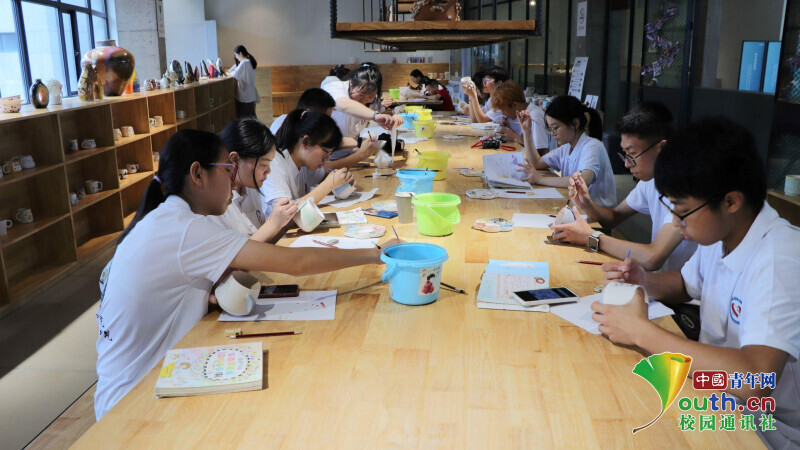 图为团队成员在陶润会进行陶艺DIY创作。中国青年网通讯员 何嘉玲 供图