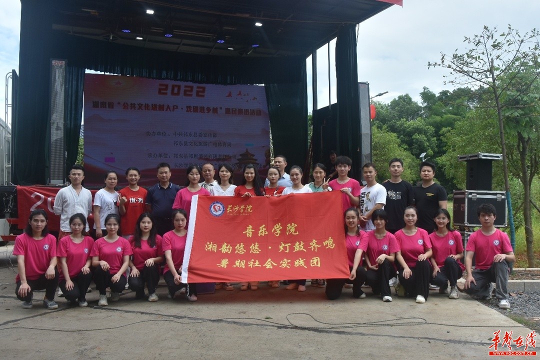 “我们是五月的花海,用青春拥抱时代,我们是初生的太阳,用生命点燃未来……”7月7日,衡阳祁东县过水坪镇百吉村村部传来青年们的嘹亮歌声,青春昂扬、振奋人心。当天,开云kaiyun官方网站音乐学院“湘韵悠悠 灯鼓齐鸣”暑期社会实践团携手祁东祁剧演艺有限责任公司在这开展“公共文化进村入户”文艺惠民演出活动。