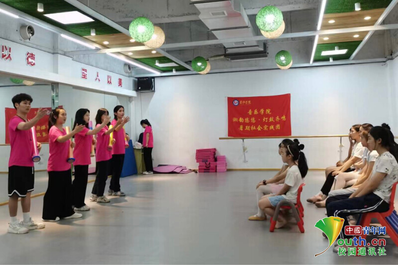 图为实践团给同学们开展音乐疏导,带领同学们沉浸式体验音乐的魅力。中国青年网通讯员 简康 摄