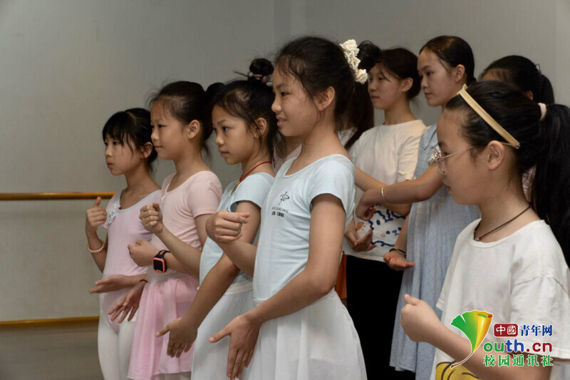 图为同学们学习渔鼓动作。中国青年网通讯员 陈鑫 摄
