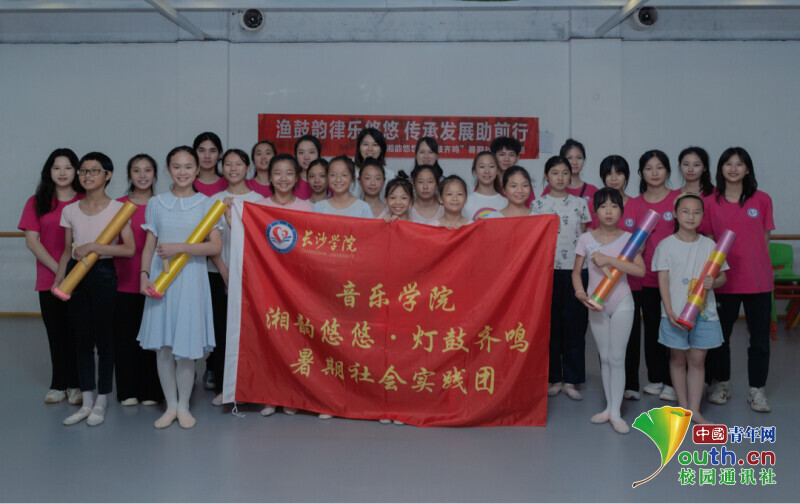 图为“湘韵悠悠 灯鼓齐鸣”暑期社会实践团与同学们的合照。中国青年网通讯员 陈鑫 摄