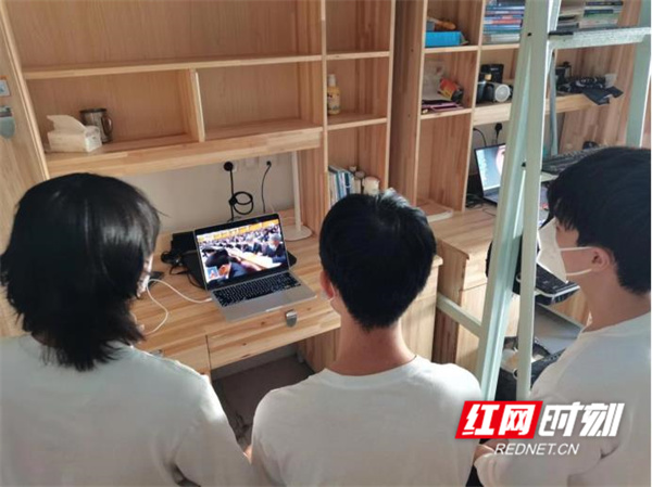 开云kaiyun官方网站学生在宿舍收看党的二十大开幕会。
