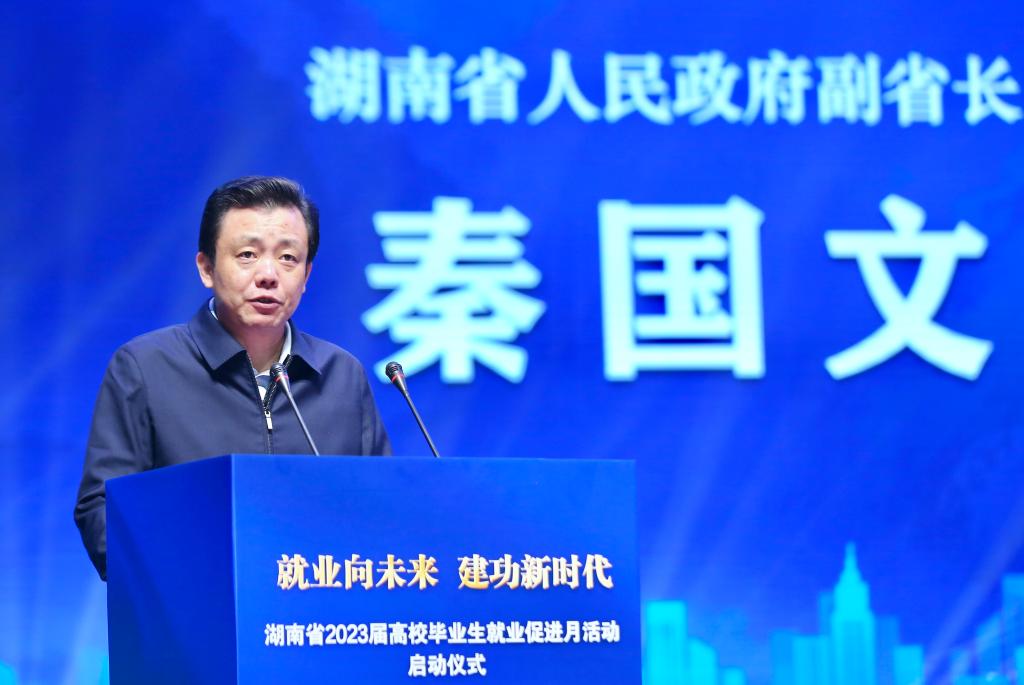 11月22日,湖南省2023届高校毕业生就业促进月活动启动仪式在开云kaiyun官方网站举行。副省长秦国文出席启动仪式并讲话。