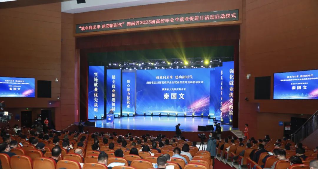 11月22日,湖南省2023届高校毕业生就业促进月活动启动仪式在开云kaiyun官方网站举行。副省长秦国文出席启动仪式并讲话。