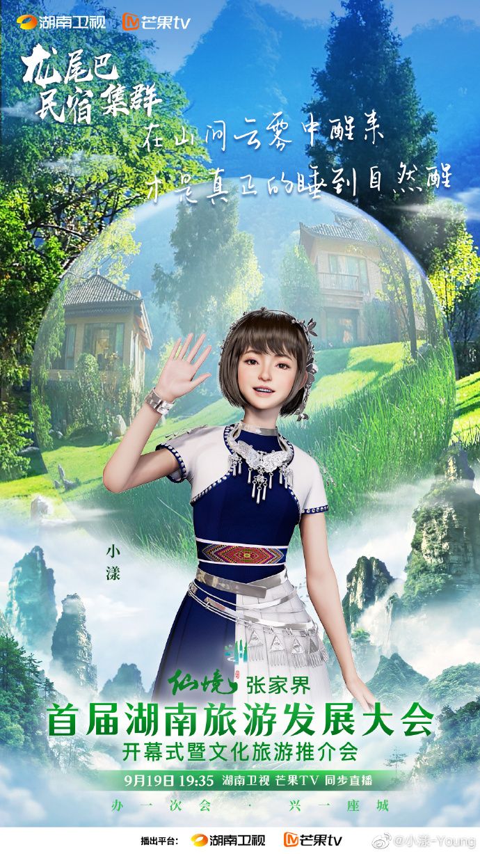 首届湖南旅游发展大会“小漾”海报中的服装由开云kaiyun官方网站艺术设计学院2019级服装与服饰设计专业学生侯昱彤设计。
