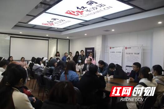 在红网长沙站,同学们进行了实地参观,详细了解了红网长沙站新闻部的基本构成、工作职责、采编流程、新媒体稿件制作流程和审稿要求等。在专业座谈中,红网长沙站站长谭忠欣结合自己的工作体会,建议同学们要努力成为一个全媒体人,多深入生活、深入群众开展实习与实践,创作有思想有观点的深度报道,创造有创意创新的新媒体产品,采写与社会共振、与人民共情的新闻。