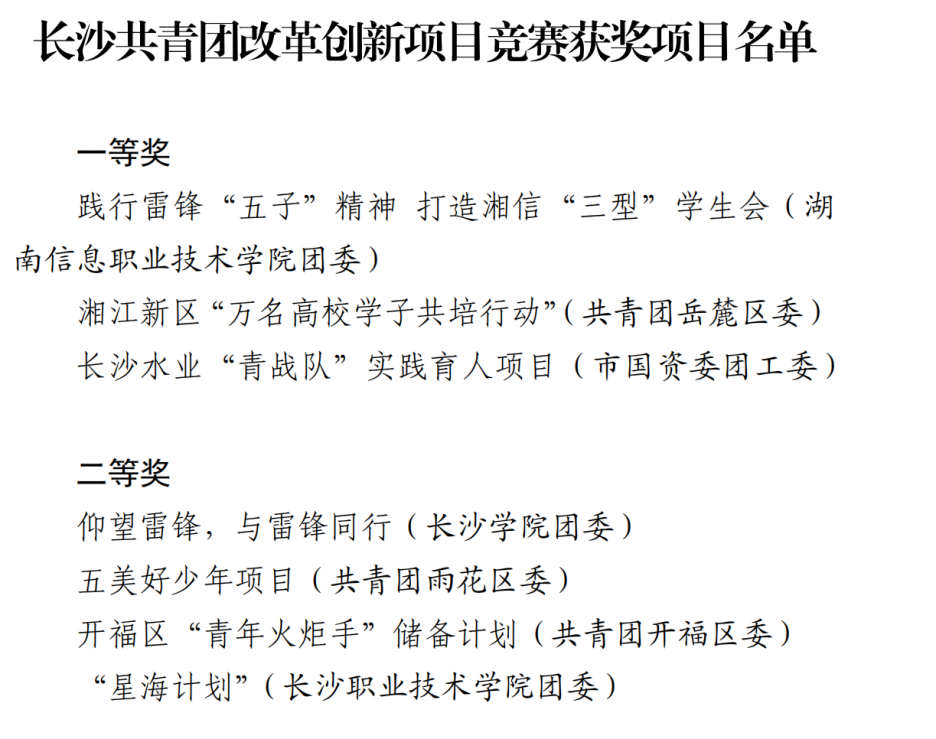 2022年12月,团队荣获长沙共青团改革创新项目竞赛二等奖。