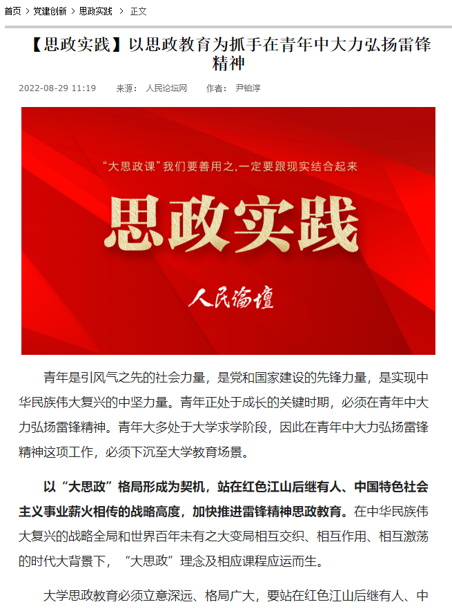 团队围绕“雷锋精神国际传播”在“学习强国”、人民论坛网等权威媒体发表文章10余篇。