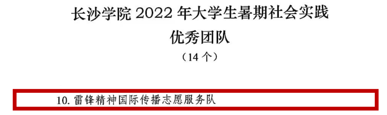 2022年8月,团队被推荐为2022年湖南省大中专学生志愿者暑期文化科技卫生“三下乡”社会实践活动“国家级重点团队”。