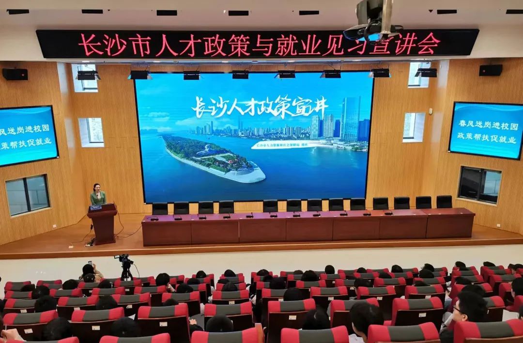 此外,活动还开展了长沙市人才政策与就业见习宣讲会,并通过“长沙人社”“长沙新闻”等网络平台同步直播,长沙市人社局业务骨干分别从毕业生可享受的人才政策、就业见习政策和就业帮扶等方面,对即将毕业的大学生进行专业指导。