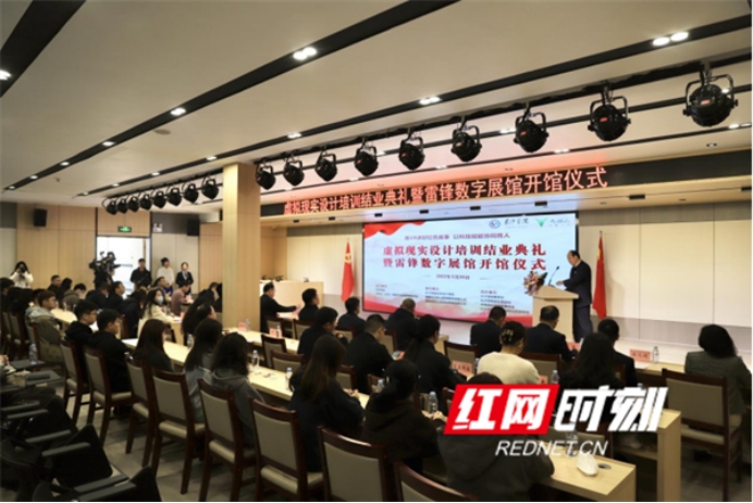 3月30日上午,开云kaiyun官方网站联合马栏山(长沙)视频文创园管理委员会开展了虚拟现实设计培训结业典礼暨VR雷锋数字展馆开馆仪式。张斐然 李子怡 邹澄枝 摄