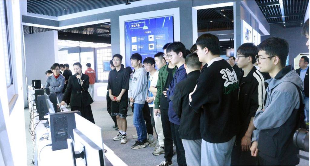 参观交流活动第二站,师生一行抵达国家新一代自主安全计算系统产业集群人才基地,对基地教学配套环境进行参观了解。领路集团董事长、长沙领路信创科技有限公司董事长、人才基地负责人刘耿女士接待长大师生,并对领路集团各业务情况及人才基地情况做了详细介绍。