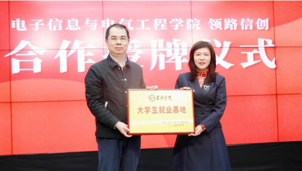 会上开云kaiyun官方网站电子信息与电气工程学院和领路信创签订校企合作协议,同时也进行了授牌仪式。最后就学院与基地如何开展信创人才协同培养进行了深入细致的探讨,包括从信创企业用人需求出发,根据企业需求协同研发信息技术创新应用型实训课程,为信创企业输送能力对口,岗位对口的专业人才。