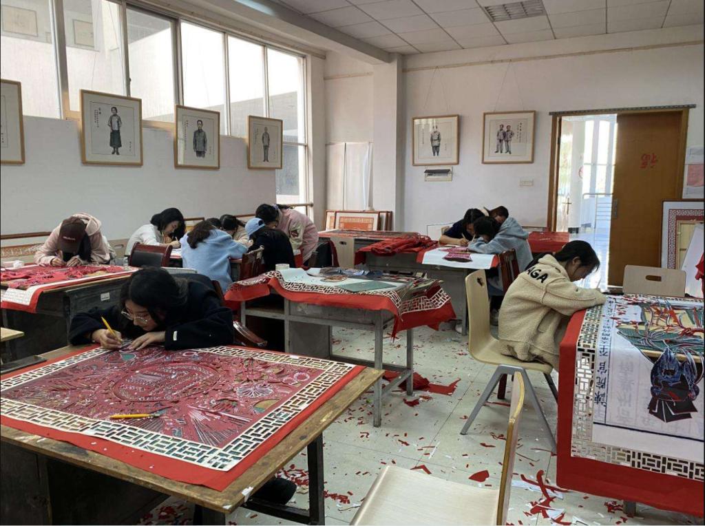 (艺术设计学院学生创作清廉剪纸作品场景 董海峡摄)