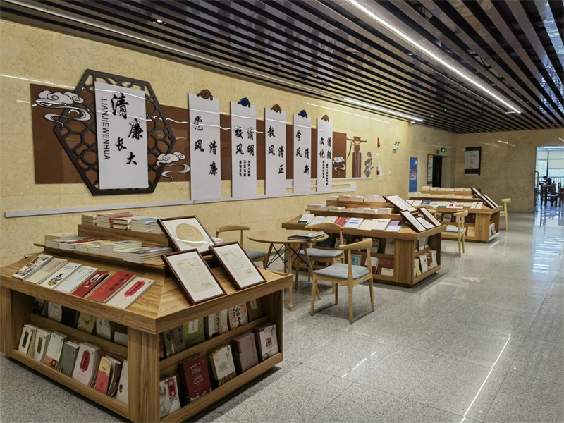 学校在图书馆打造清廉空间,把清廉元素融入校园文化建设中。清廉空间由专题展览区、清廉文化墙、清廉阅读区和智慧廉政云平台组成。专题展览区,展出特色鲜明清廉主题作品;一面清廉文化墙,以清新淡雅为基本格调,展现清廉校园建设目标;廉洁阅读区的书架上摆放以廉洁为主题的书籍千余册;智慧廉政云平台,VR视频、闯关问答、海量的学习素材,创新了廉政宣传载体。