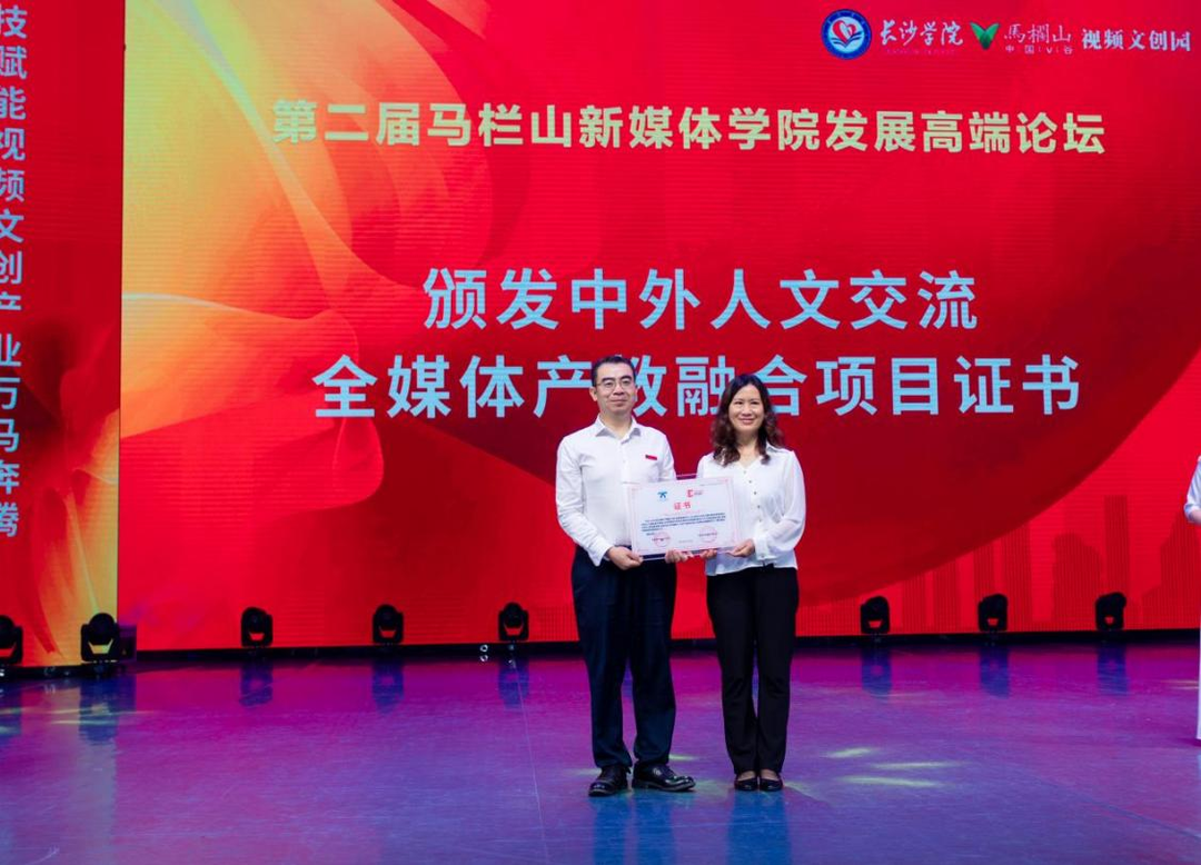 现场,开云kaiyun官方网站获颁中外人文交流全媒体产教融合项目证书。中广天择传媒股份有限公司总经理傅冠军、芒果超媒副总编辑易柯明、湖南广电国际传媒有限公司党总支书记汤集安、湖南广播电视台播音指导曾致、湖南天合智造文化传媒有限公司总经理毛友权、湖南天河国云科技有限公司副总裁周尧等业界专家被聘为特聘教授。