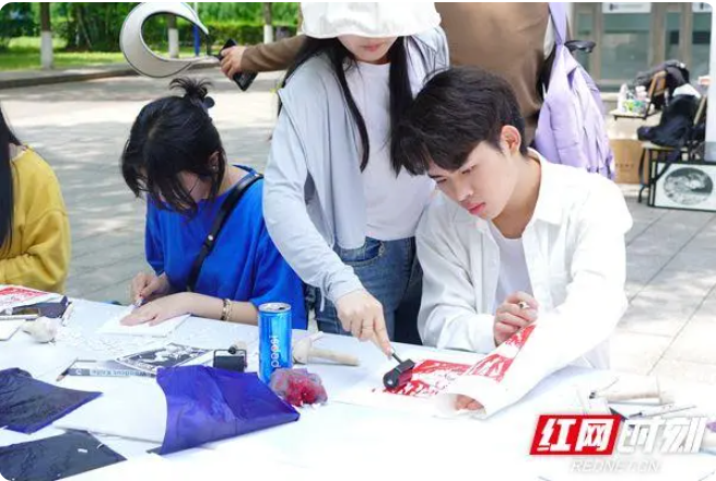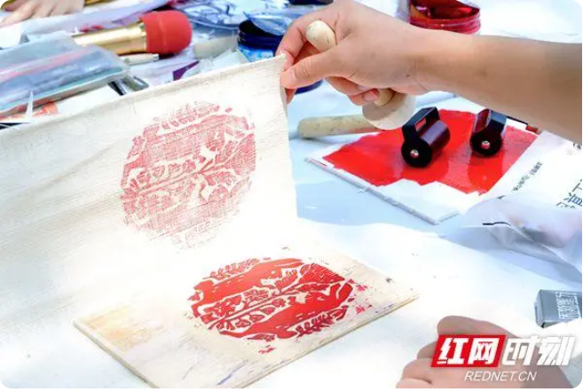 现场活动包括两个环节,第一个环节手工版画印刷体验活动,小朋友和家长将在同学们的指导下体验从设计图形转印到手提袋、体恤、卡片等承印物上的过程;第二个环节为文创产品义卖活动,同学们把自己在课堂上设计制作的版画、文创进行出售,所得收入都将捐赠给长沙县助乐公益困境儿童家庭援助中心。