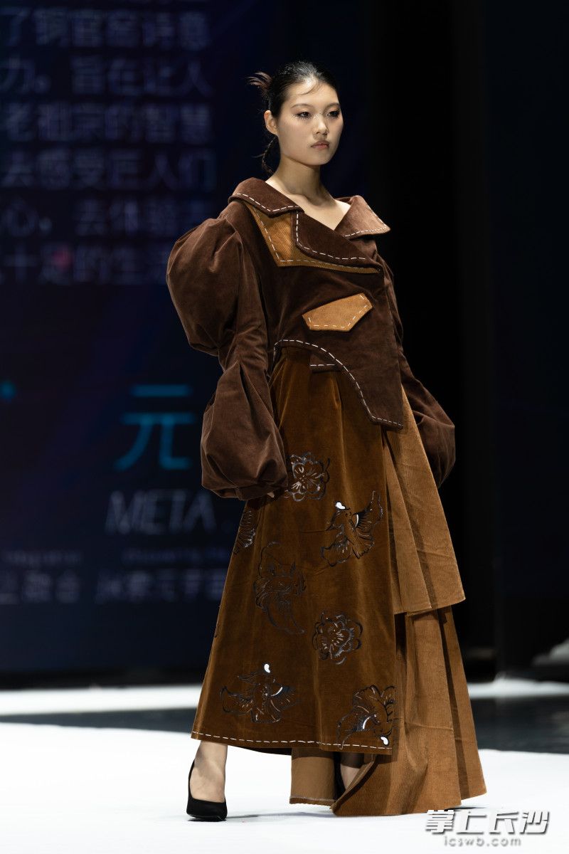 据了解,艺术设计学院长期致力于探索数字化教学模式,开拓数字文创人才培养模式。去年,学院师生组成的专业团队为湖南卫视的虚拟主持人“小漾”打造数字服装,登上了首届湖南旅游发展大会及“奋进新时代”国家成就展、2023湖南卫视跨年晚会等。“学院启动了数字服装与服饰的设计探索实践,立足湖湘文化,探索湖湘传统服饰、少数民族服饰向数字资产转化。同时强化数字服装设计课程,邀请行业专家、企业专家进行课堂指导,师生共同参与企业的服装虚拟设计项目。”艺术设计学院服装与服饰设计教研室主任周磊告诉记者。