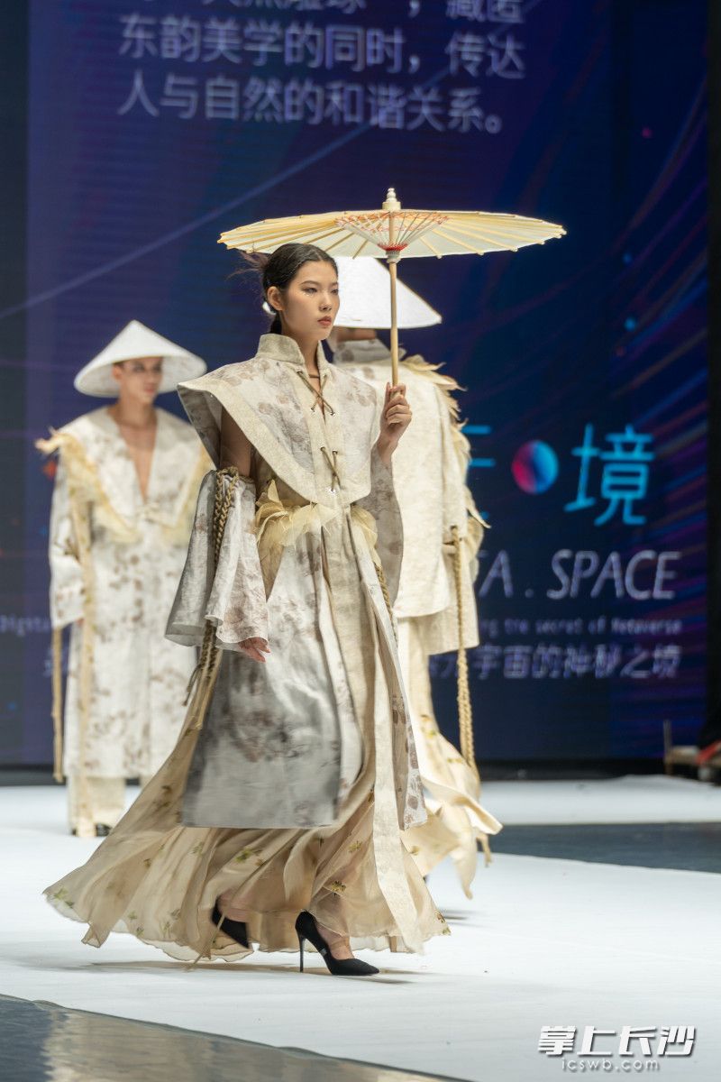 毕业展演作品以“元·境”为主题,采用“元宇宙”的特殊视角展示服装的魅力。除署名外均为长沙晚报全媒体记者 周数邑 摄