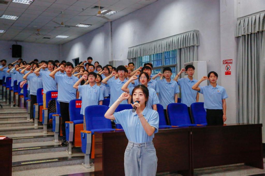 “以最积极的心态,最饱满的热情,认真完成实践工作,为民族复兴铺路架桥、为祖国建设添砖加瓦!”与会志愿者齐声宣读暑期社会实践誓词,青春蓬勃的音浪响彻会场。