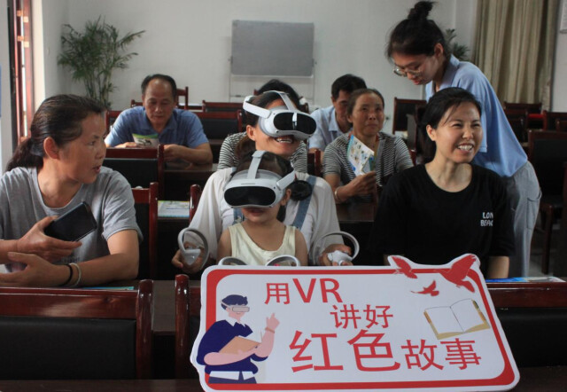 学生和村民们分批带上VR体验设备,在团队志愿者的指导下参观雷锋数字展馆,沉浸式学习雷锋日记,了解雷锋同志生平事迹,切身感受雷锋精神。“雷锋的家就像真的在我面前一样,时代在发展,中国真了不起!”戴上VR设备后,体验者发出感慨。